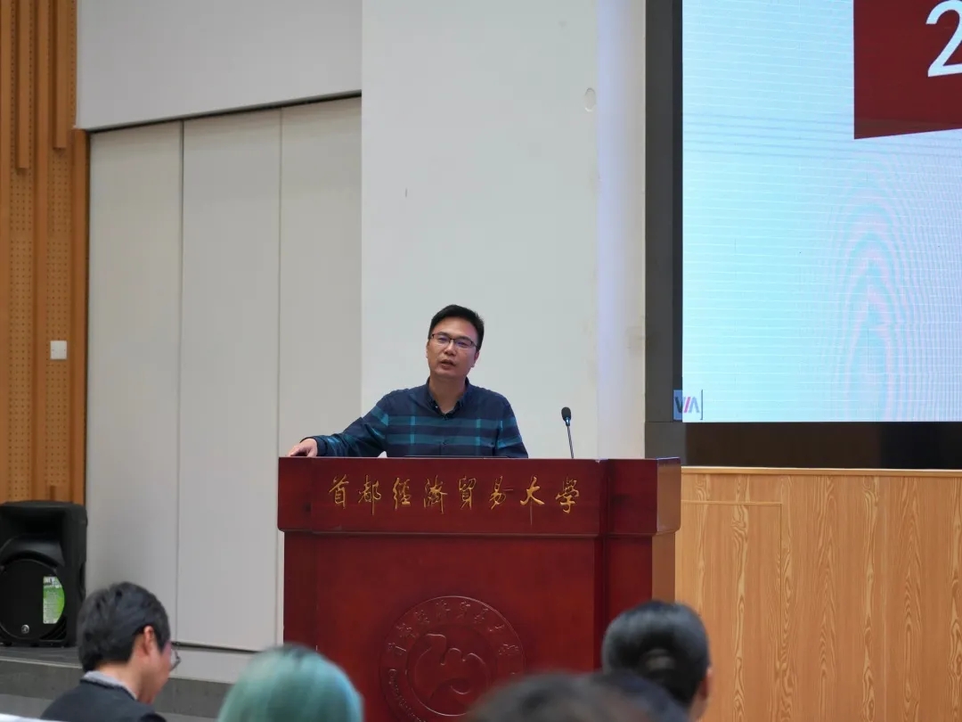 典礼开始,李鲲鹏代表学院对2021级新同学的到来表示欢迎,介绍了学院办学方向和师资力量。他为大家的校园生活提出了三点希望。他表示大学的学习更加自主,希望同学们脚踏实地,不断汲取知识,尽快树立人生目标。他强调“大学之道,在明明德,在亲民,在止于至善”,希望21级新生能够弘扬良好的品德,拥有宽广的胸怀,开阔的眼界,不安于现状不负青春。最后他希望同学们之间相互理解,相互包容,在国经管度过美好而又难忘的大学时光。