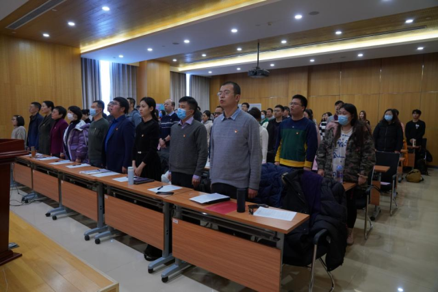 大会在庄严的国歌声中拉开帷幕。学院党总支书记曾庆梅代表上一届党总支做题为《牢记立德树人初心 勇担为党育人使命 全面加快学院事业高质量内涵式发展》的工作报告。曾庆梅表示,学院党总支牢记立德树人的初心,勇担为党育人、为国育才的教育使命,在学校党委的正确领导下,充分发挥政治核心和领导作用,全面推进学院事业科学、快速、健康发展,党的建设和学院建设都取得了可喜成绩。她指出学院的事业发展正处于质量提升、改革攻坚的重要阶段,提出今后一个时期学院发展的指导思想、发展目标和发展举措。她表示党总支政治建设和从严治党主体责任要进一步深化落实,学院学科和专业建设要进一步进行专业课程和人才培养特色凝练,中英双语教学的人才培养模式要进一步探索,课程思政建设要进一步推动,人才队伍结构要进一步改善,党建和思想政治工作的针对性和实效性要进一步提高,基层党组织在发挥作用方面还需进一步增强,党风廉政建设要持续推进。她还提出了自觉落实意识形态工作责任制,充分发挥海归党员教师的先锋模范作用,不断加强宣传阵地的建设,落实意识形态把关机制,注重挖掘和运用好新媒体,不断拓展宣传思想工作的平台的倡议。