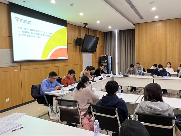 接着,党总支委员、教师党支部书记牛毅从“学习二十大精神的意义”“深刻理解中国式现代化”以及“走中国式现代化道路必须坚持中国共产党的领导”三个方面进行了学习分享。中国式现代化,不是对西方式现代化的简单模仿,而是强调对它的辨证性评价和扬弃,旨在真正谋求全体人民共同富裕、人的全面发展、坚持走和平发展道路,是对人类文明新形态、新方向的重要探索,具有很高的历史意义。习近平总书记指出:中国共产党从来不代表任何利益集团、任何权势团体、任何特权阶层的利益,其始终代表最广大人民根本利益。牛毅认为,要反对以资本为中心、两极分化、对外扩张掠夺的现代化,真正开创全体人民共同富裕,实现物质文明和精神文明的协调发展、走和平发展道路的现代化,就必须坚持中国共产党的领导。