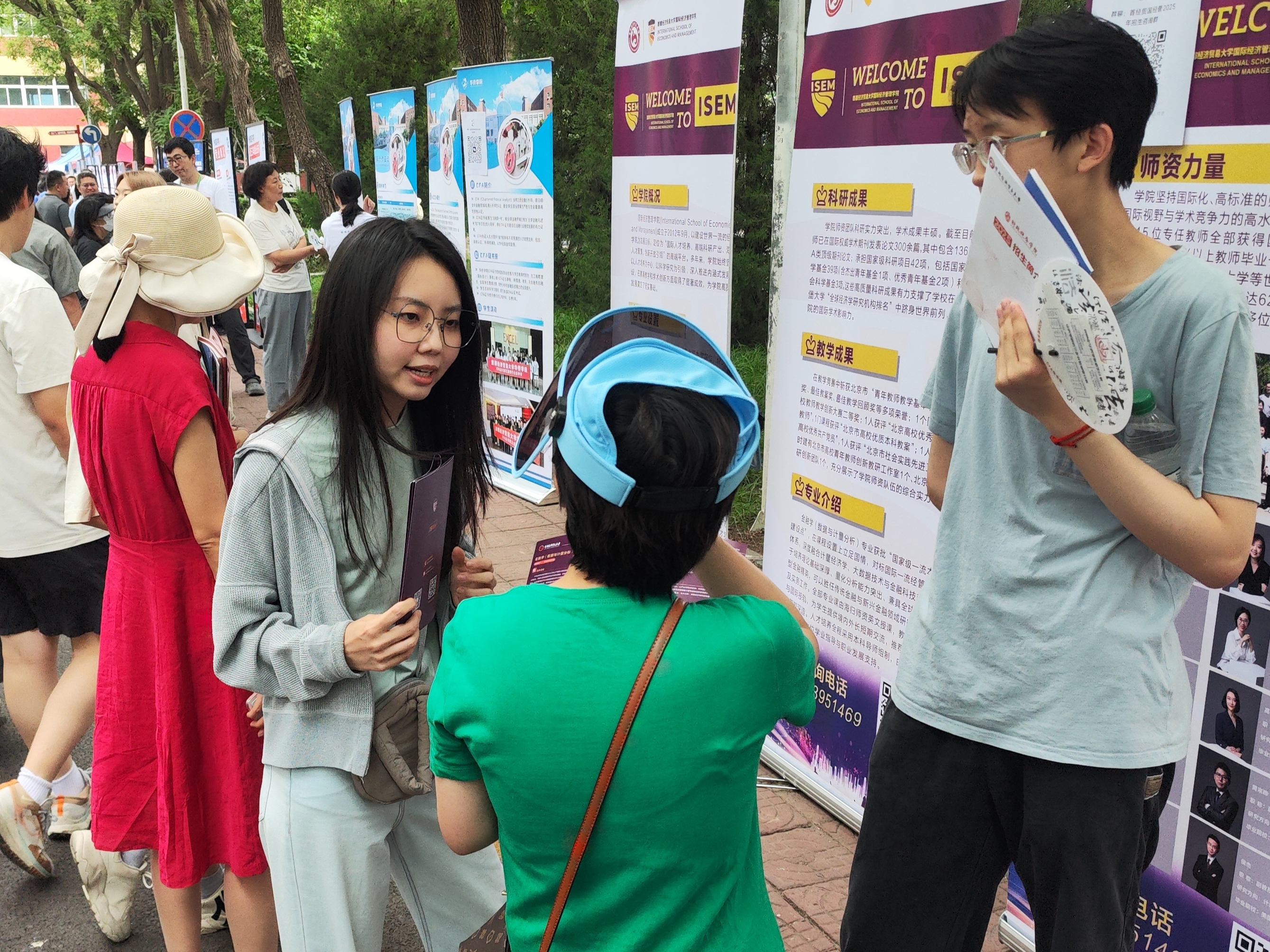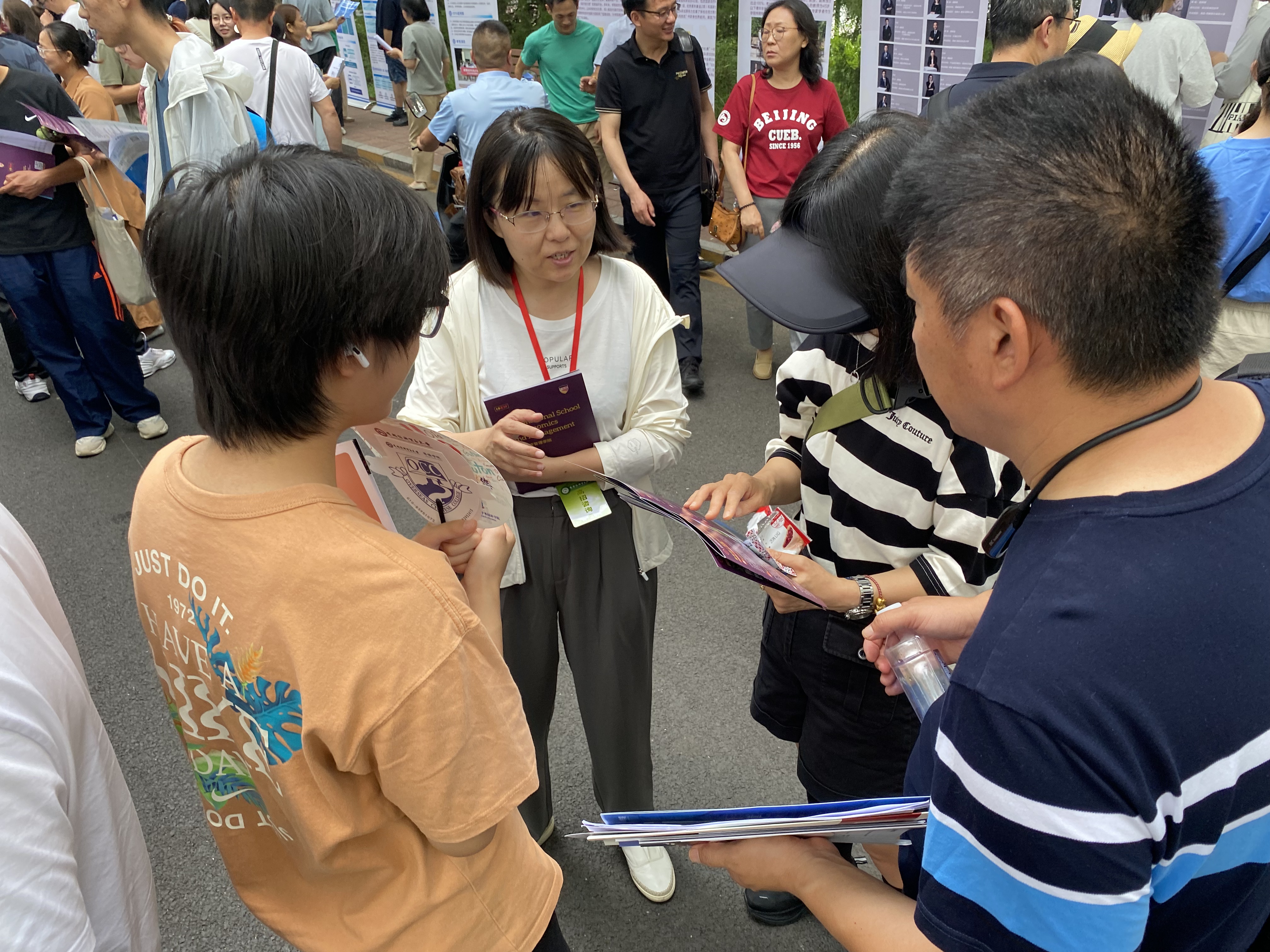 尽管天气炎热,但考生和家长的热情不减,学院展台前咨询者络绎不绝。师生团队以专业、细致的态度,针对每位考生的具体情况,围绕专业特色、培养模式、国际交流、校园文化及就业发展等家长和考生的核心关切点,提供了个性化的解答和建设性的指导。学院还提前准备了宣传展架、招生宣传册以及包含笔、本等学院文创产品,分发给前来咨询的考生和家长。