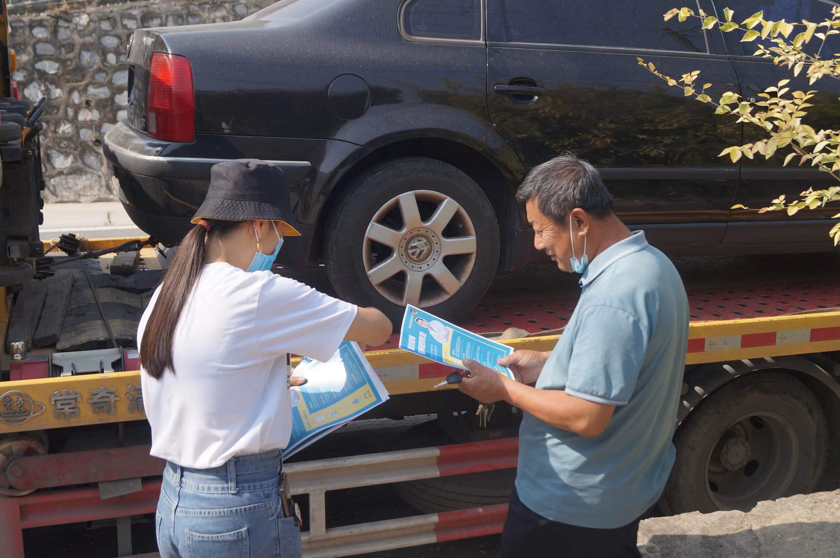 宣传活动主要分为以下两项内容:分发宣传单和口罩以及向村民讲解相关防疫政策。为了加强防疫宣传效率,在有限时间内帮助更多村民了解防疫相关知识,赵嘉烁带领积极分子兵分两路,其中四名守在扫码入口处帮忙协助扫码,并向来来往往的村民们分发宣传单和口罩,剩余同学则呈沿途宣发制,在村路上行走途中,一边寻找未进行宣传的村民,一边实地了解该村内实际的防疫相关措施落实情况,尽可能在村内将防疫政策加快落实,广泛宣传。